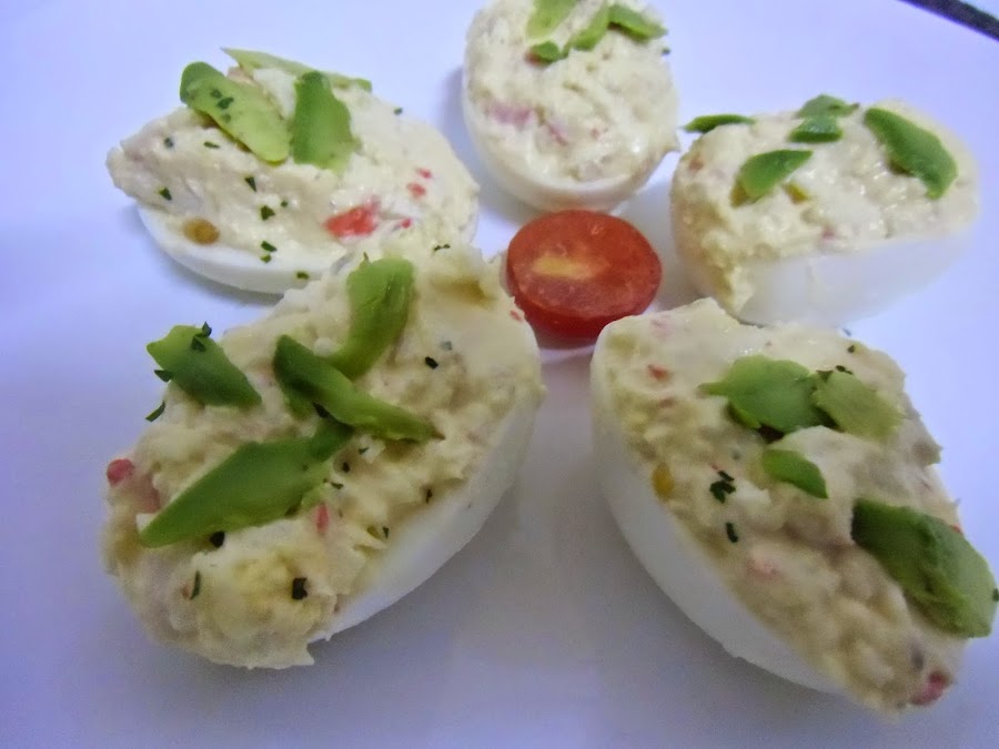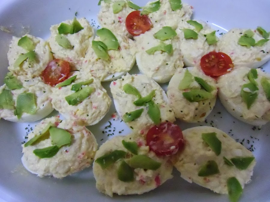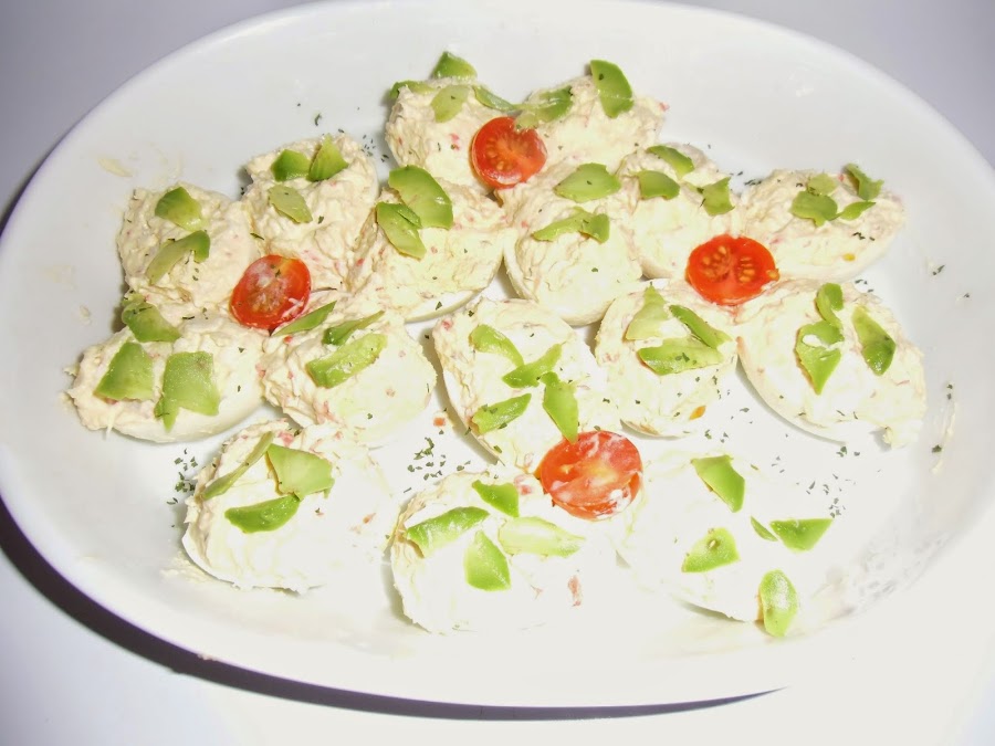 Ya solo falta decorar un poco, yo he utilizado aguacate y tomates cherrys, pero seguro que podéis hacerlo mucho mejor.