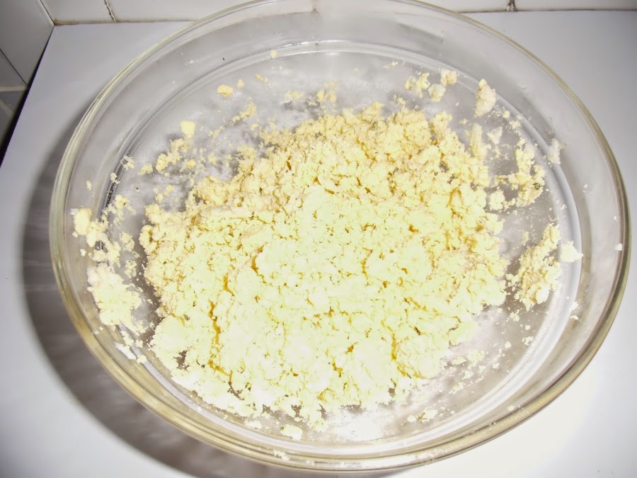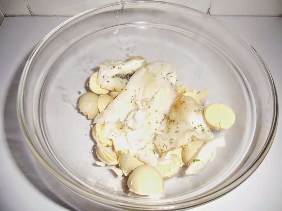 Cuando esté lista la ponemos en un recipiente con las yemas de huevo y lo picamos todo.
