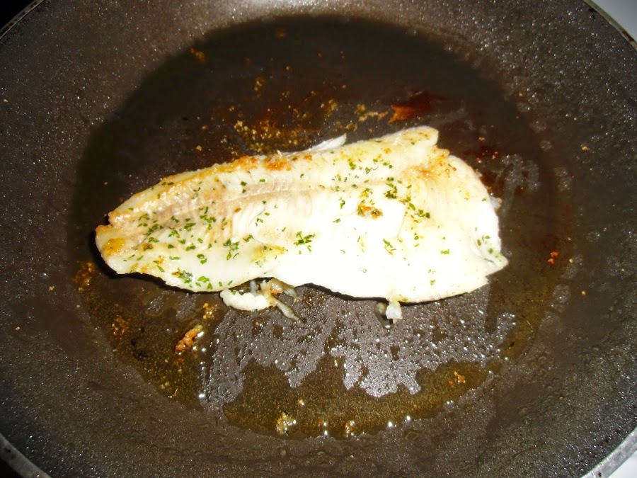 Por otro lado en una sartén con un chorrito de aceite de oliva cocinamos la merluza a la que le habremos puesto sal, ajo en polvo y un poco de perejil previamente.