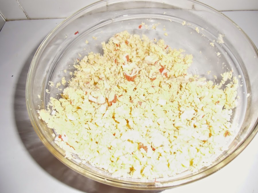 A continuación añadimos el surimi picado y lo mezclamos también.