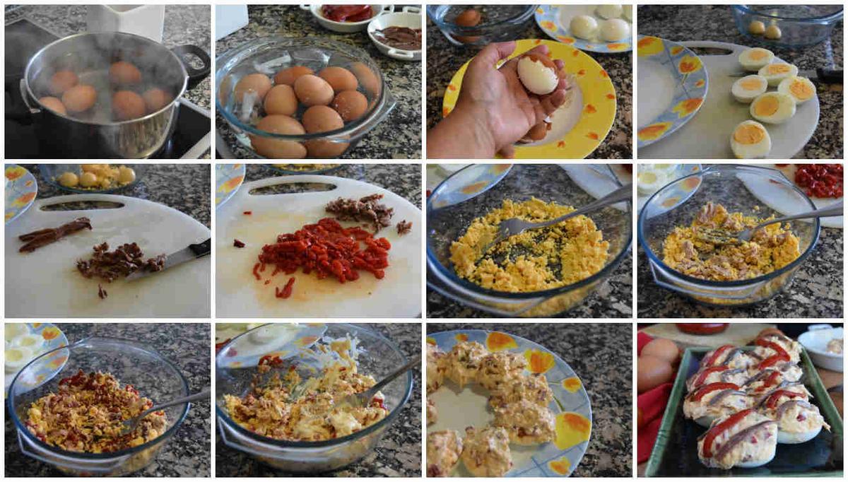 Elaboración de los huevos rellenos de pimientos y anchoas: