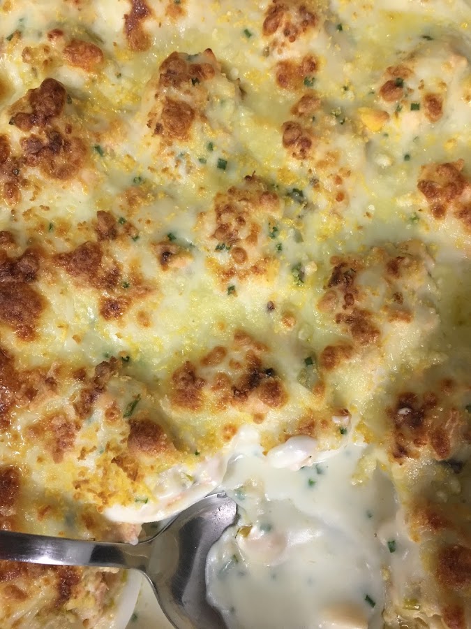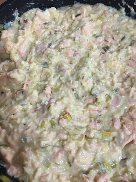 El resultado salta a la vista: una delicia de suavidad y finura. La combinación del puerro y el salmón es exquisita y la bechamel de cebollino (los Torres ponían además eneldo, pero no había ese día eneldo en mi supermercado) le da un punto fresco exquisito.