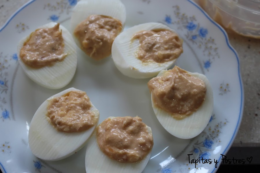 Queria hacer unos huevos rellenos algo distintos, ya tengo varios en el blog y aprovechando el reto de Facilisimo de huevos rellenos he hecho estos que están rellenos pero con un acabado especial.