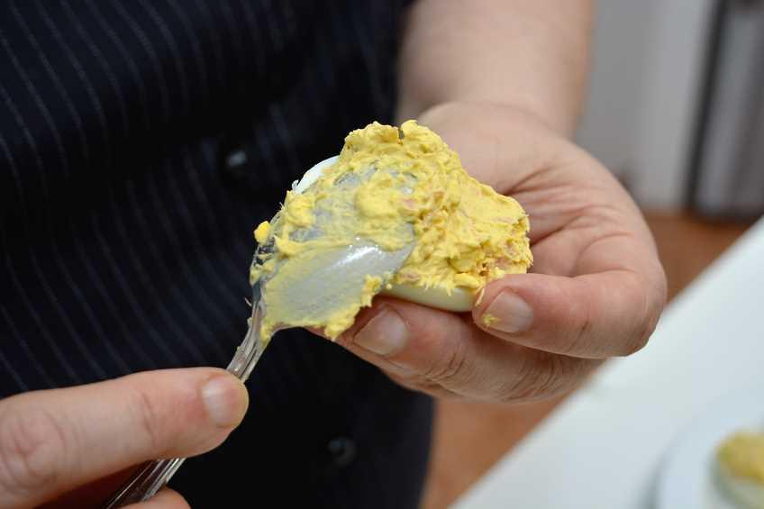 Paso 4 Ahora, cuchara en mano, vamos rellenando los huevos haciendo una montañita.