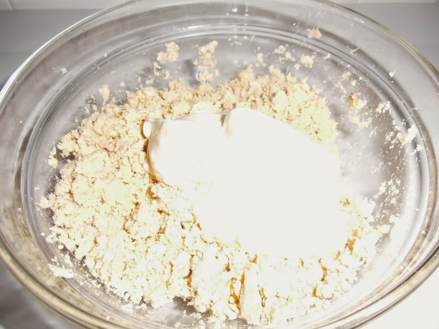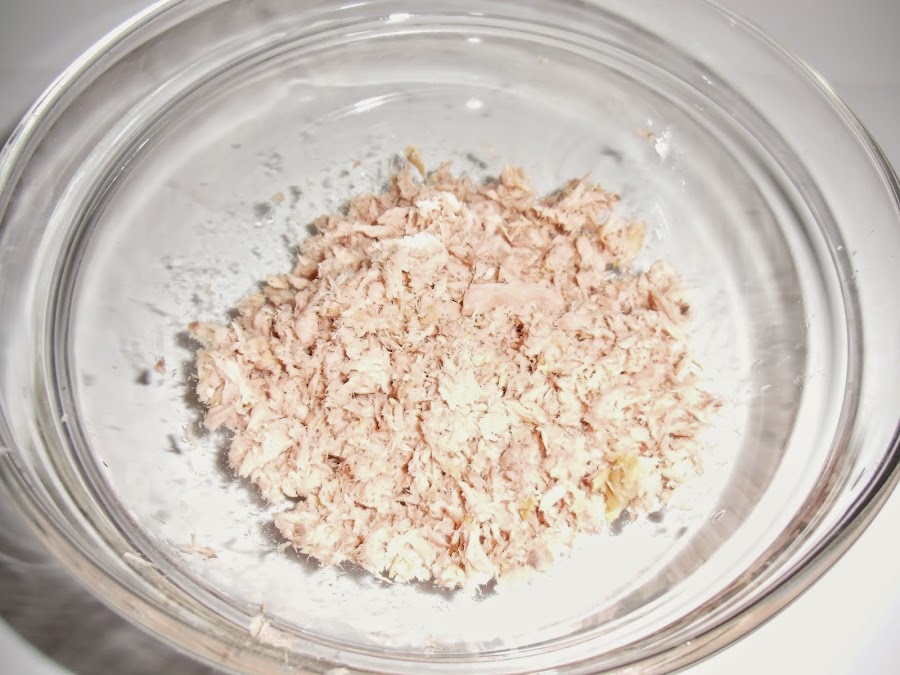 En un bol ponemos el atún y las yemas de los huevos y mezclamos bien.