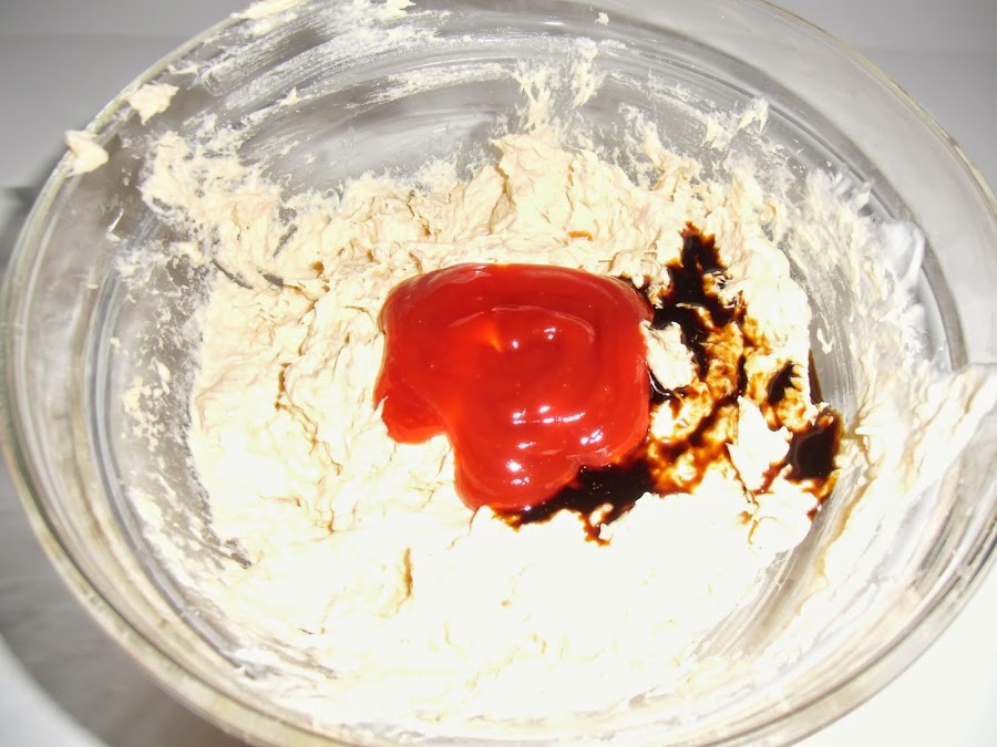 Añadimos 4 cucharadas de mayonesa 2 de ketchup, unas gotas de salsa de soja y un chorrito de brandy. Lo mezclamos todo.