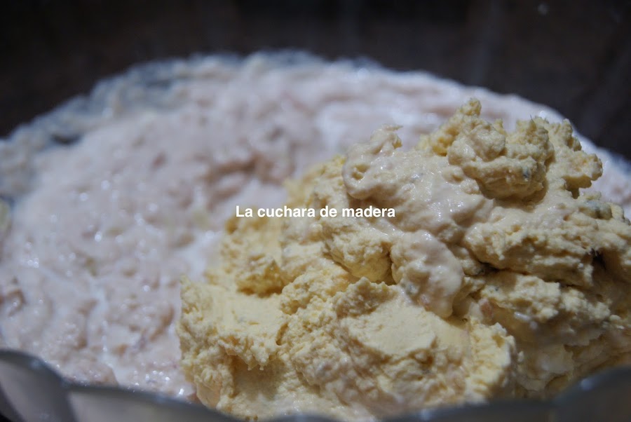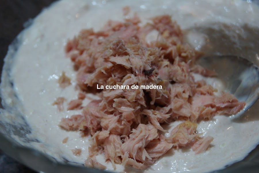 Añadimos la otra lata de atún, pero esta no la batimos, sólo mezclamos