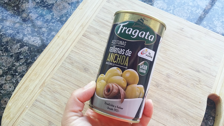 unas aceitunas rellenas de anchoa {las mías, Fragata, de la Degustabox de este mes}.