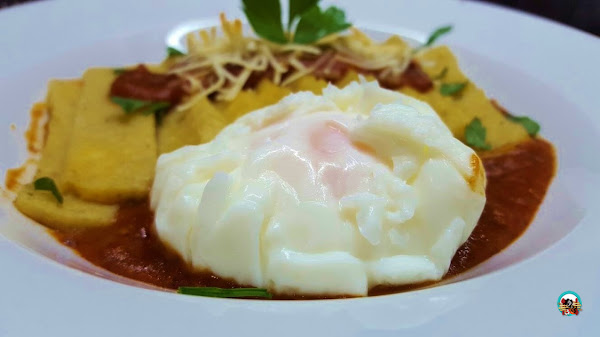 pastel de polenta con huevo escalfado