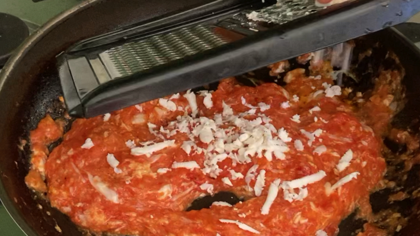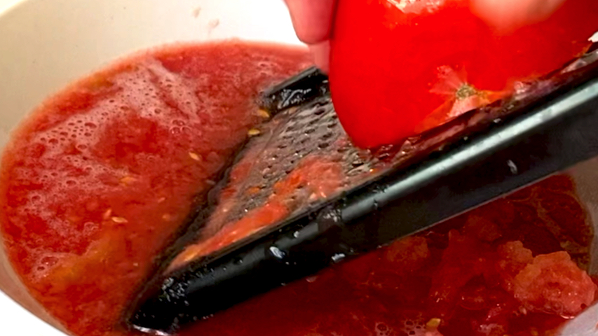 Ralla el tomate y ponlo en una sartén a fuego medio-alto.