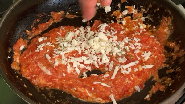 Apaga el fuego y desmiga el queso feta sobre la mezcla.