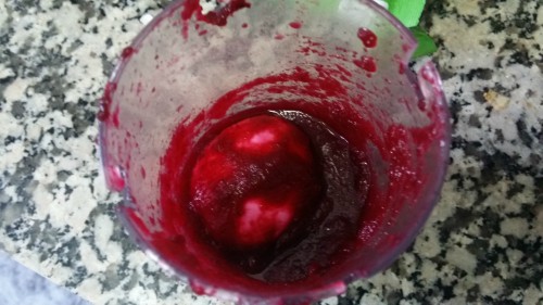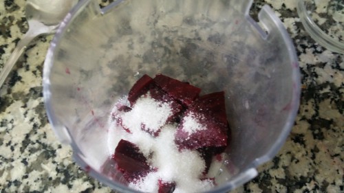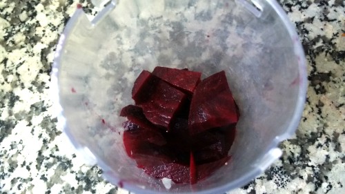 - Poner la remolacha cocida y cortada a dados en el vaso de la batidora.