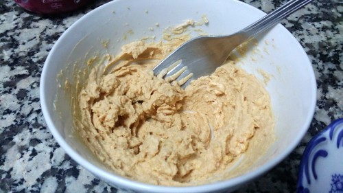 - 3 cucharadas de queso batido 0%. Blanca puso la misma cantidad de mayonesa)