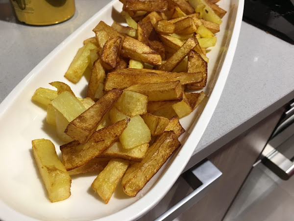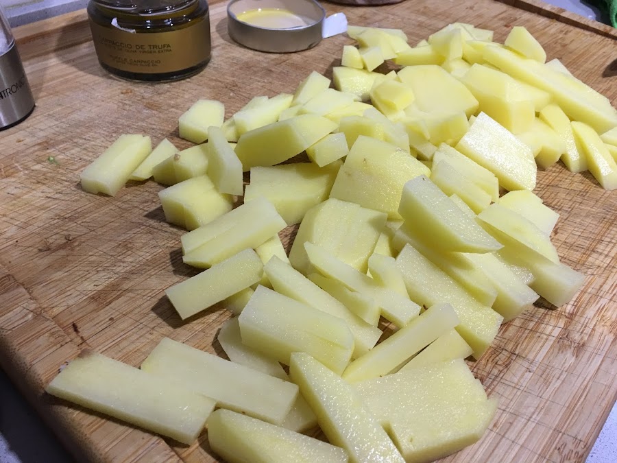 1. Pelamos, lavamos y cortamos las patatas a tiras.