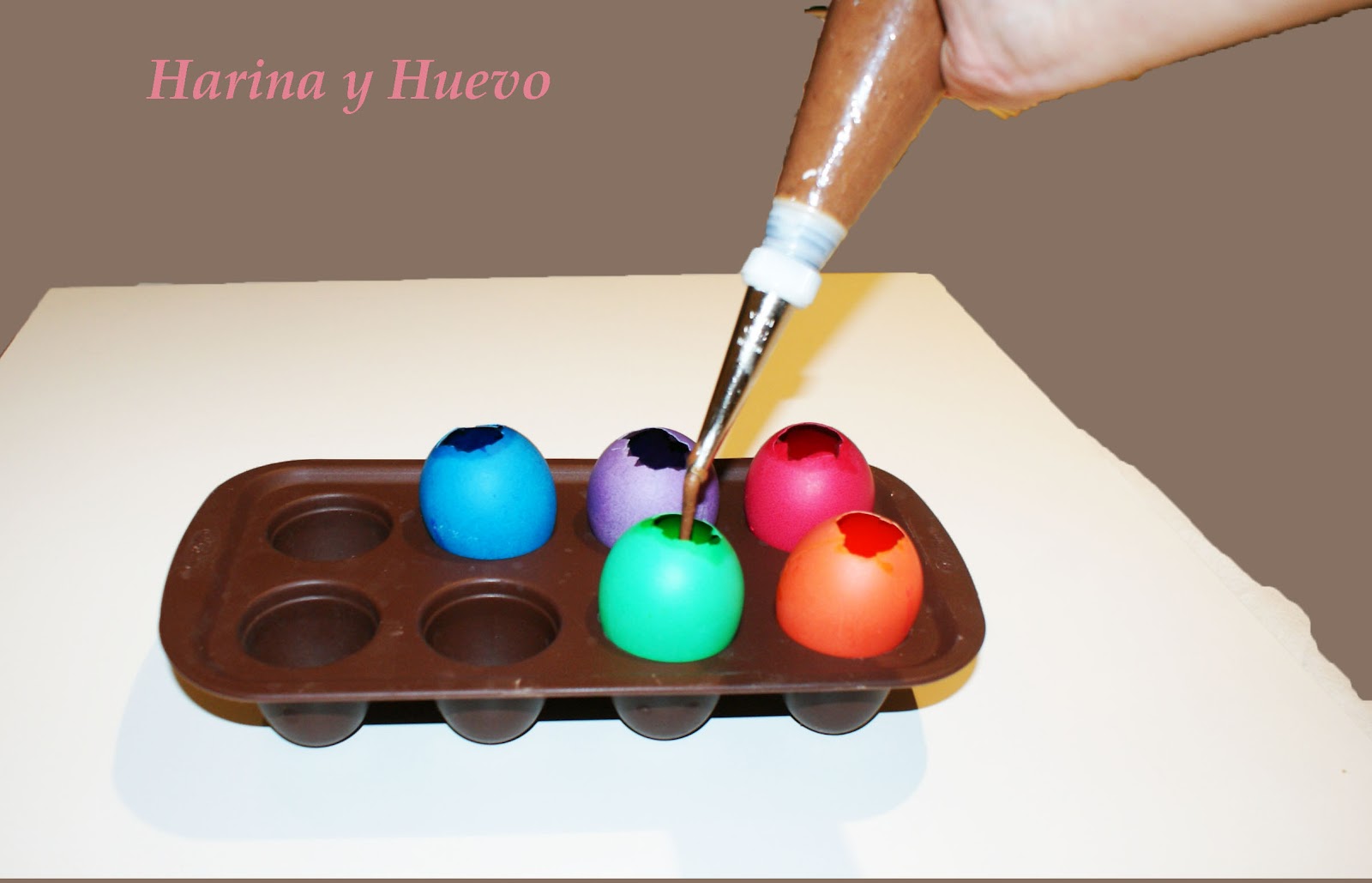 Vamos a preparar unos huevos de colores rellenos de bizcocho de chocolate, que por ponerle nombre en inglés que así queda todo más sofisticado los llamaremos Eggcakes. Y tan pancha me he quedado jajaja