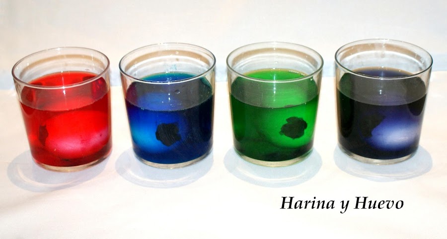 Una vez tienen el color que queremos los sacamos, enjuagamos el interior y dejamos secar. Mientras vamos preparando el bizcocho que pondremos dentro. ¡Mirad que colores más bonitos han cogido!Como véis el morado es el que peor queda pero los naranjas y rojos...¡quedán genial! si solo tenéis los colores básicos mezclarlos y conseguiréis más, por ejemplo, el naranja yo lo he hecho con rojo y amarillo.