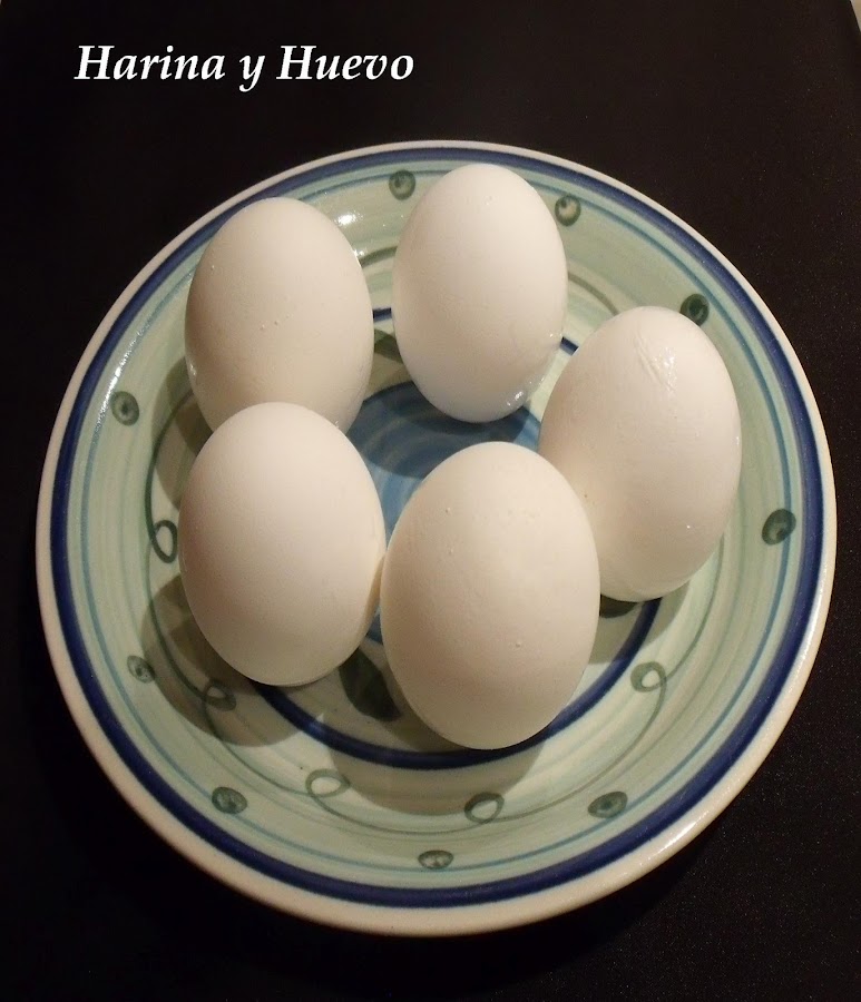 5 huevos BLANCOS, para la receta del bizcocho no vamos a usar todos así que lo que podéis ir haciendo es "rompiendo" los huevos como os cuento más abajo cuando hagáis otras recetas y guardando las cáscaras.