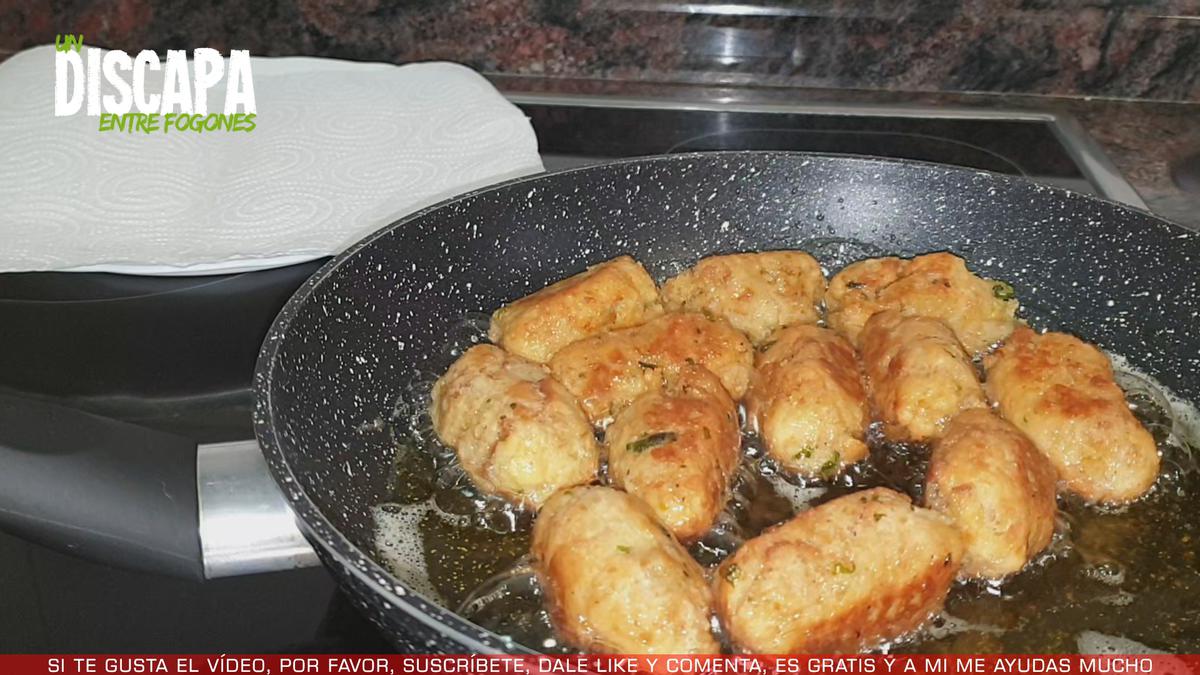 Cuando ya están bien dorados, los sacamos a un plato con papel absorbente para absorba el exceso de aceite.