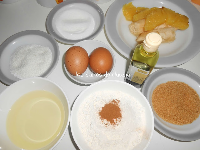 Hoy vengo con un bizcocho similar al bizcocho de zanahoria, pero contiene piña y plátano y es igual de húmedo y rico.
