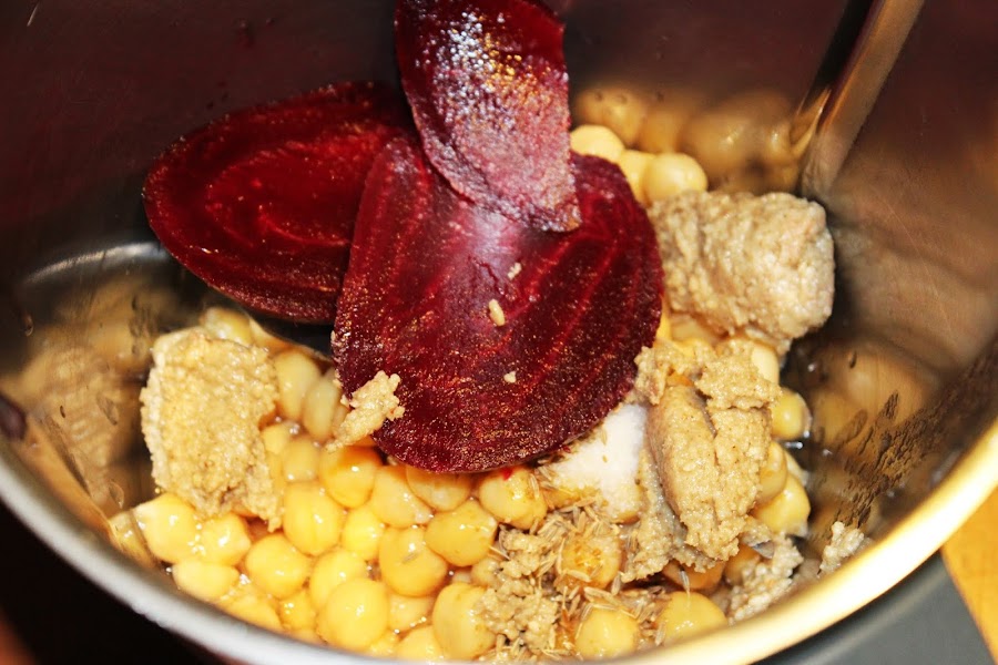 Hace unos días probé a hacer hummus de remolacha, así que añadí los ingredientes que me parecieron sin olvidar la base del hummus, los garbanzos.