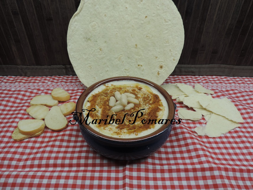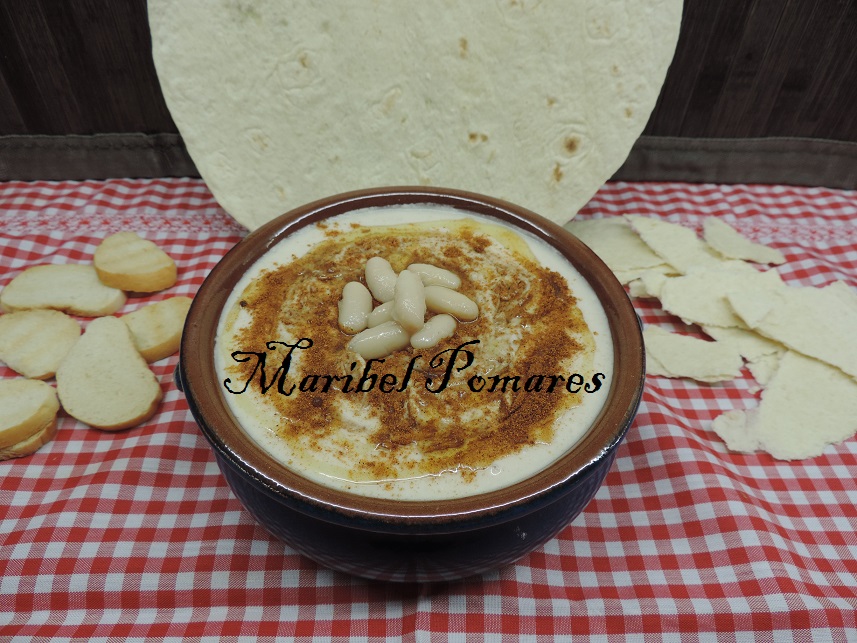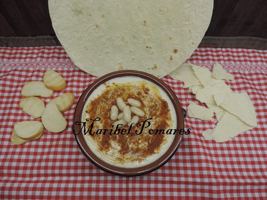 Nosotros lo hemos acompañado con tortitas y pan tostado, ya que no tenia hecho pan de pita. Pincha aquí para ver como se hace.