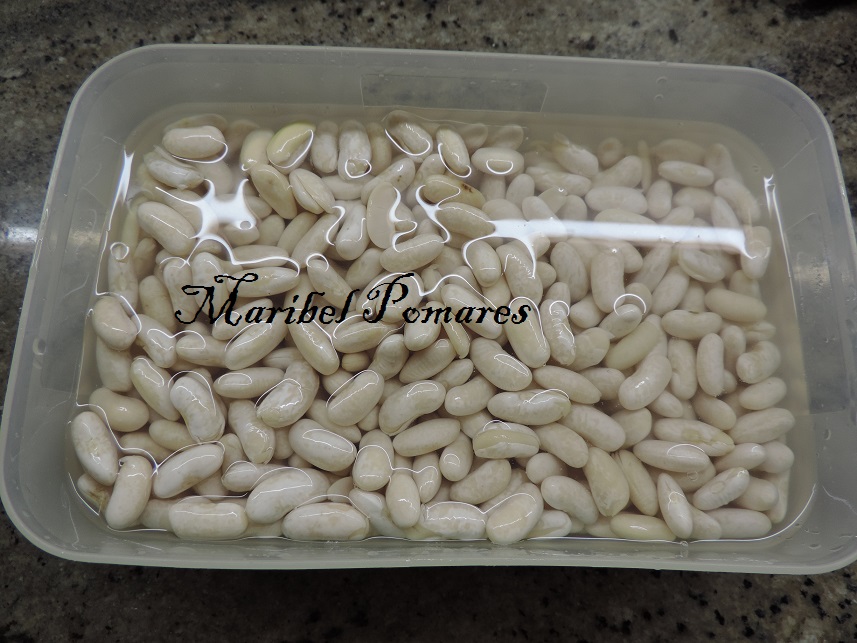 Ponemos las alubias blancas en remojo unas 10 o 12 horas.