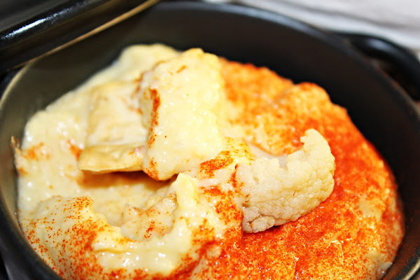 Aprovechando que había hecho para comer coliflor y había sobrado un poquito para cenar, recordé esta receta y me puse manos a la obra para prepara un "mini aperitivo" en un plis.