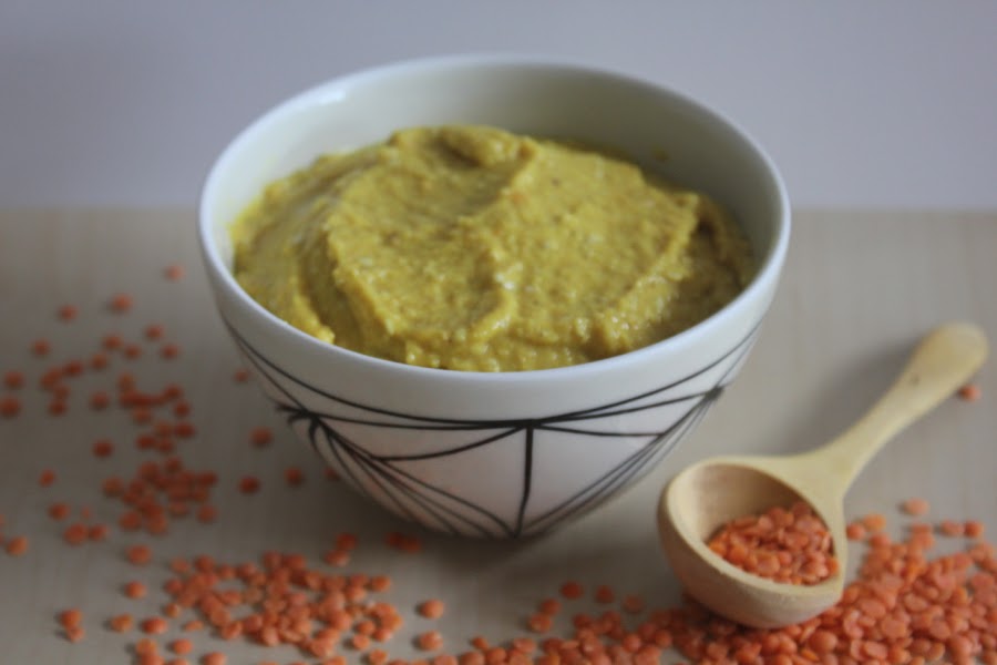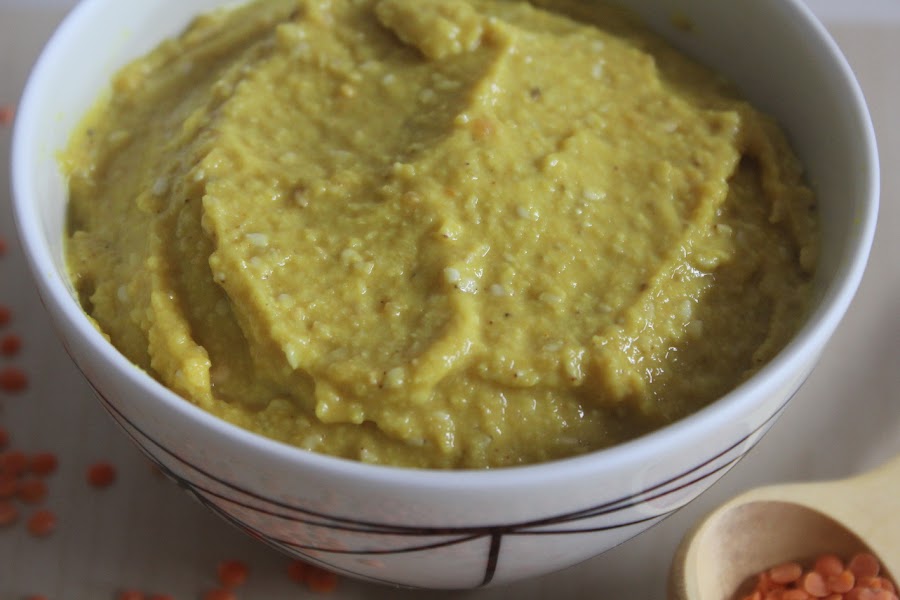 Un nuevo tipo de hummus, esta vez realizado con lentejas, en concreto con lentejas coral o rojas (las que puedes ver en la fotografía anterior)