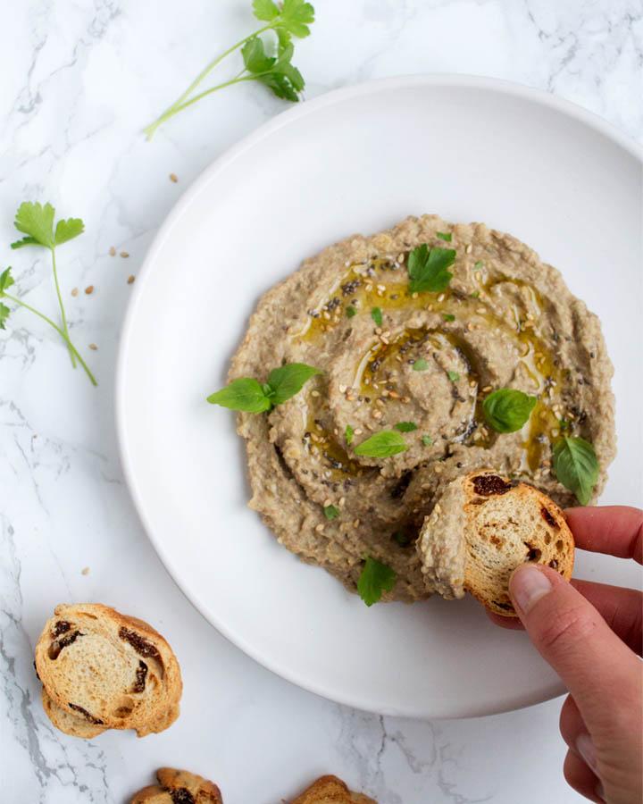 Sirve en un plato con unas hojas de albahaca y menta por encima, adereza con un buen chorro de aceite de oliva virgen extra y dale el toque final con el sésamo. ¡Está para comérselo! Acompáñalo con panecillos, tostadas o vegetales crudos.