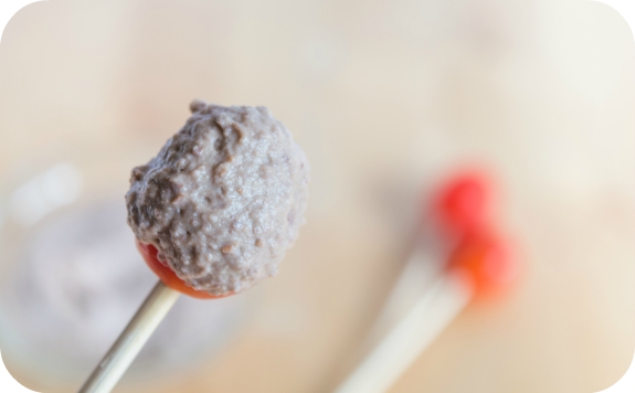 Para comerlo mi opción favorita es preparar brochetas de tomates cherry e ir mojandolos, pero puedes usar todo tipo de crudites como apio, zanahoria o pepino. Y sino con pan de pita, regañás o incluso nachos.