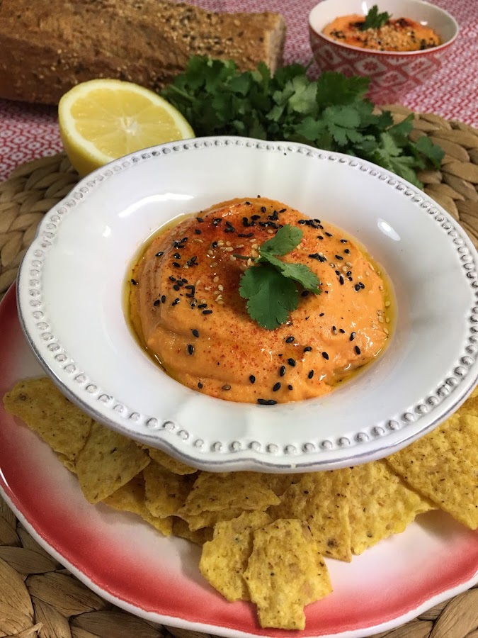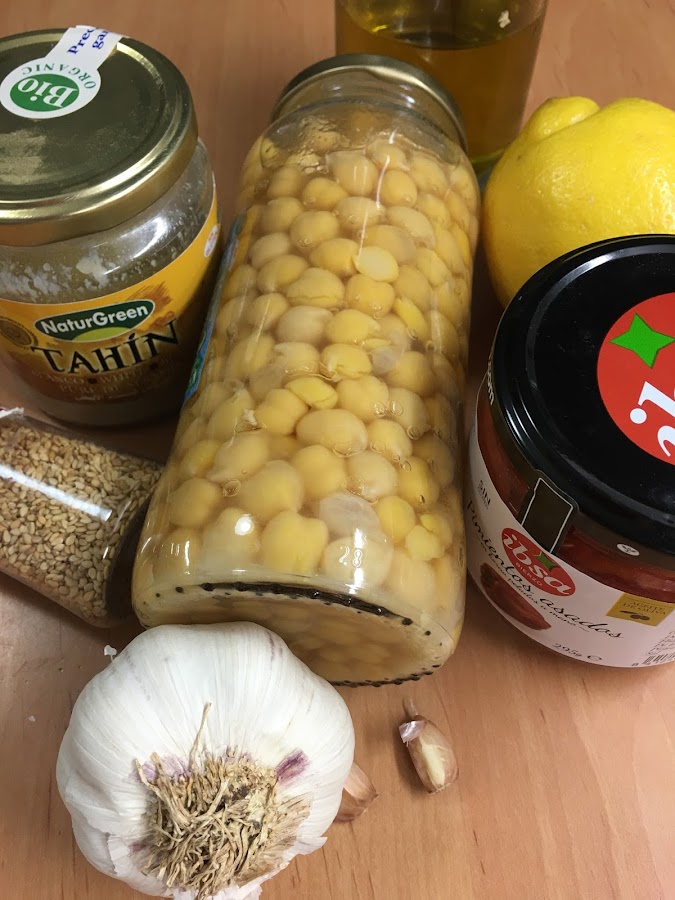 Compro los garbanzos ya cocidos envasados en tarro de cristal, le añado otra verdura si quiero que tenga más color, un ratito batiendo con la batidora o procesadora eléctrica y ya está listo para dipear con panes variados, pitas, pototos o lo que os parezca.