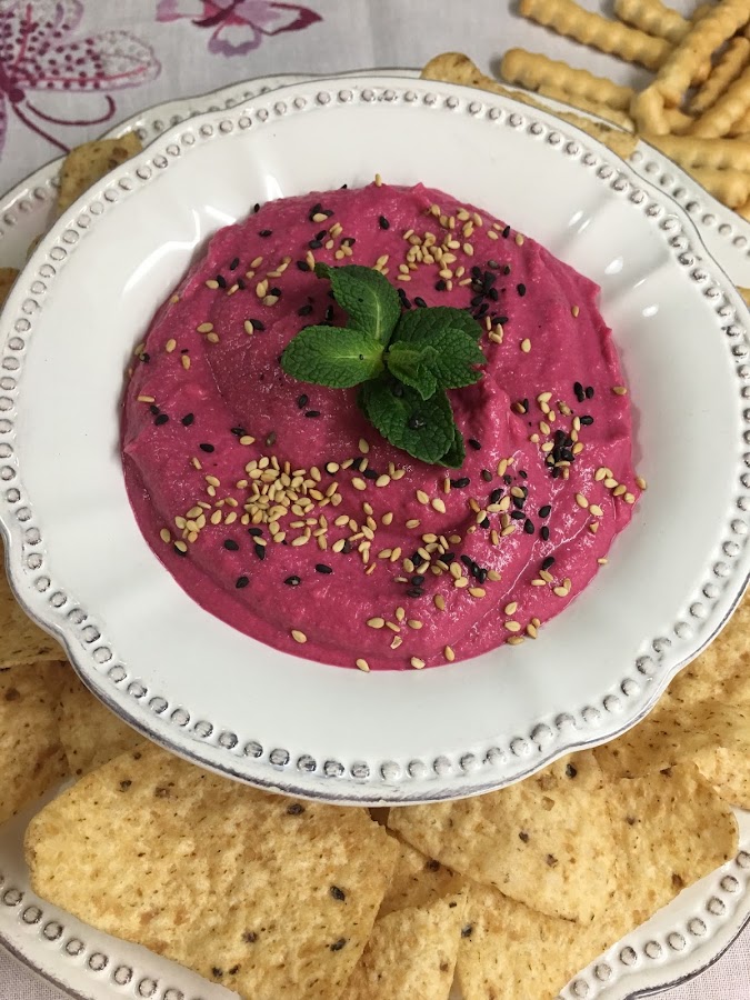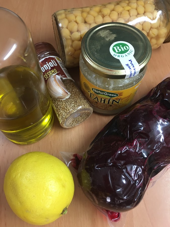 Es maravilloso ver los colores de los alimentos naturales. Sin aditivos ni conservantes, este hummus o puré de garbanzos de los países árabes, os va a encandilar por su sabor y su color.