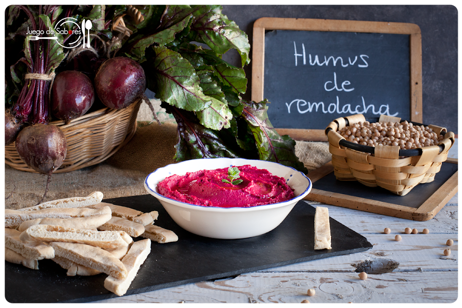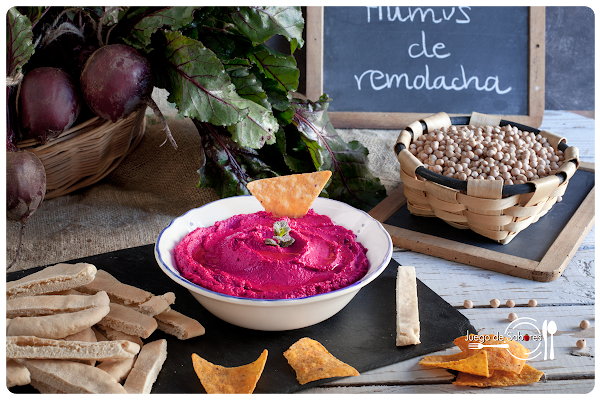 Efectivamente. Habéis leído bien. Humus, sí; pero a los garbanzos les hemos añadido remolacha. Nos hemos salido un poco del canon clásico. El humus lo hicimos en su día. Nos gustó, pero pensamos que más adelante lo tunearíamos como se hace con los coches. Vamos, que le daríamos un toque personal que añadiera sabor y color a la receta, como habíamos vistos en algunos blogs. Hablamos con nuestra amiga y proveedora de verduras Mercè para que nos avisase cuando tuviera unas remolachas hermosas, merecedoras de foto, y nos pusimos manos a la obra. Este humus puede comerse acompañado de pan de pita o bien con unos nachos de maíz que usaremos a modo de cuchara.