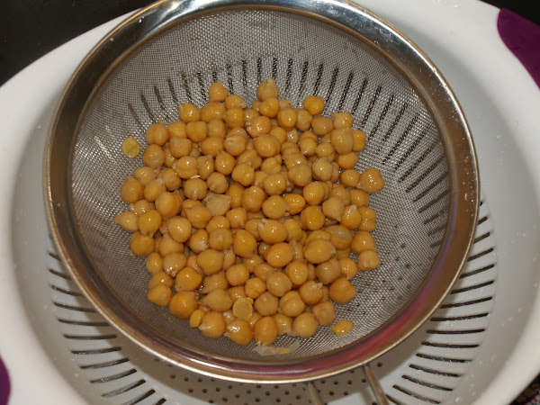 - Este puré es aún más fácil y rápido de hacer que el baba ganoush, ya que no hay que asar berenjena ni nada. SI usáis garbanzos secos, los tendréis que poner a remojo el día anterior y luego cocerlos, una media hora. Si queréis versión super rápida, podéis utilizar garbanzos de bote, ya cocidos. Eso sí, intentad que sean unos buenos. Yo utilicé unos de una marca de productos ecológicos que encuentro aquí y que son fantásticos.
