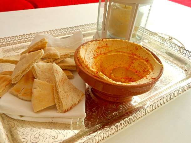 Acompáñalo con pan pita tostado y partido en triángulos.