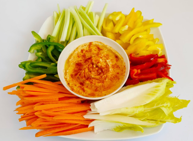 Podemos acompañar el hummus con un pan de pita recién tostado, untado sobre unas tostas o bien con unas crudités (bastoncitos de verduras frescas). Servimos y a disfrutar.