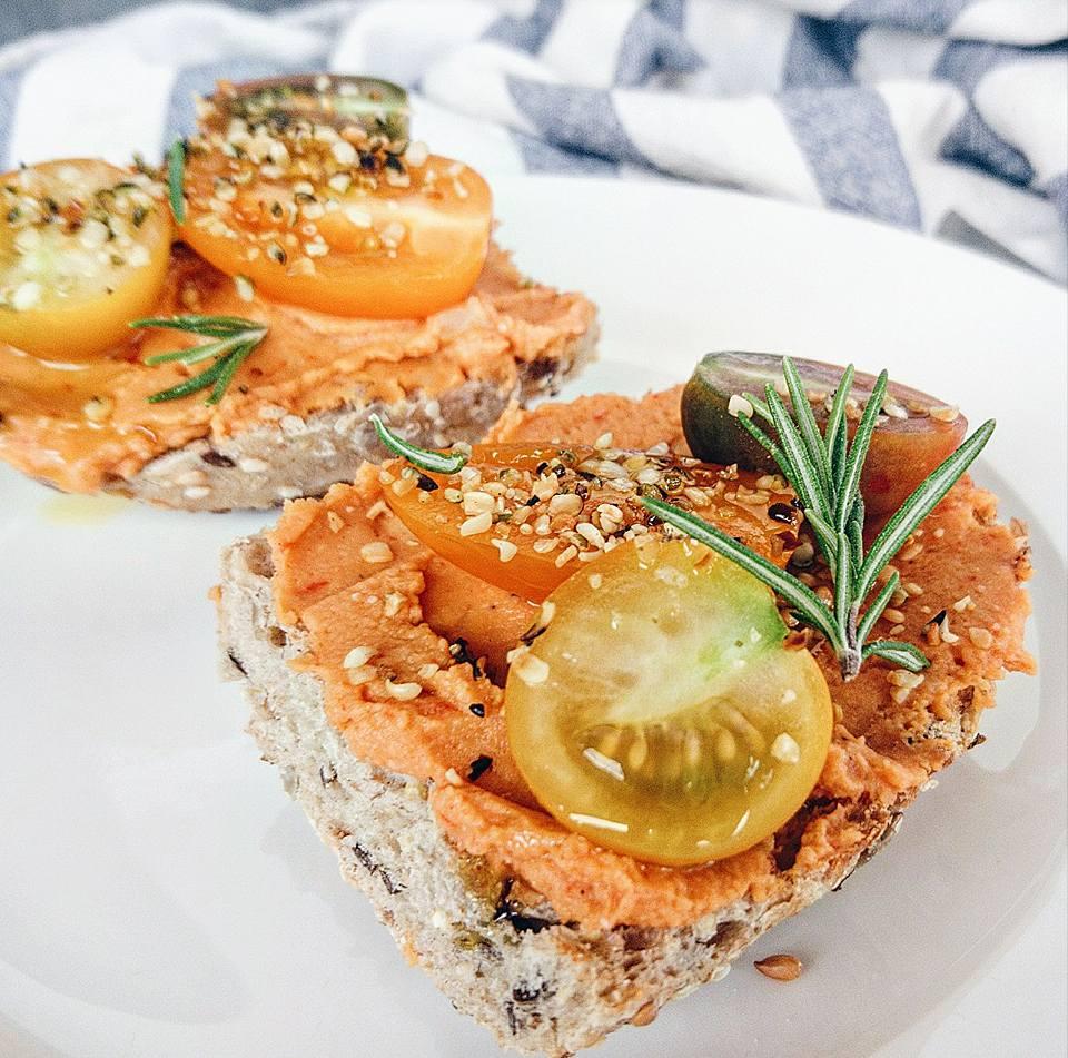 MI TOSTADA FAVORITA DE HUMUS AGRIDULCE DE PIMIENTOS DE PIQUILLO