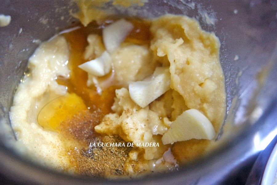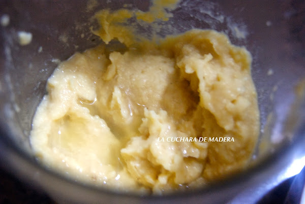 Empezamos batiendo la mitad de los garbanzos junto con el agua de cocer los garbanzo