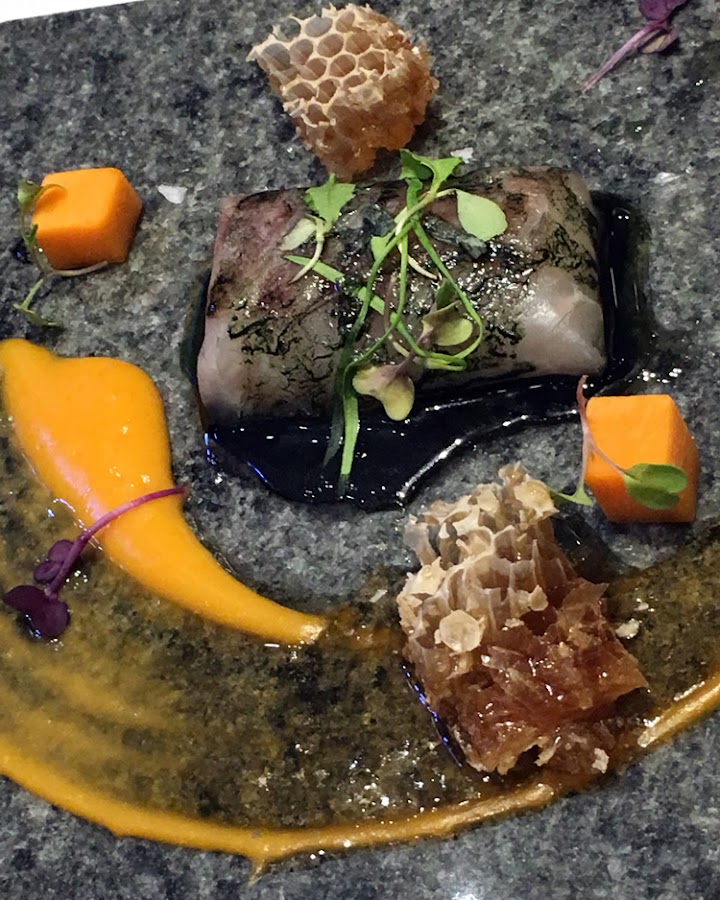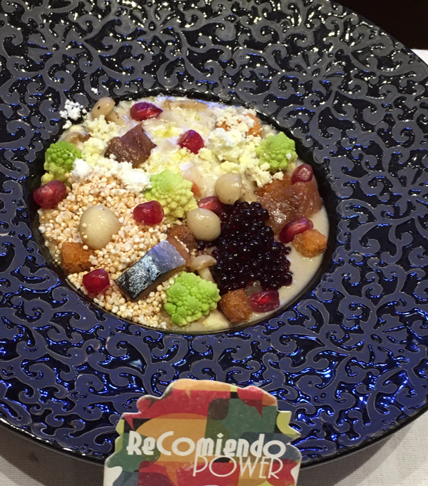 “Salmorejo Melojo de calabaza, con Albur confitado, panal escabechado y acentos de hinojo”, por Juanjo Ruiz.