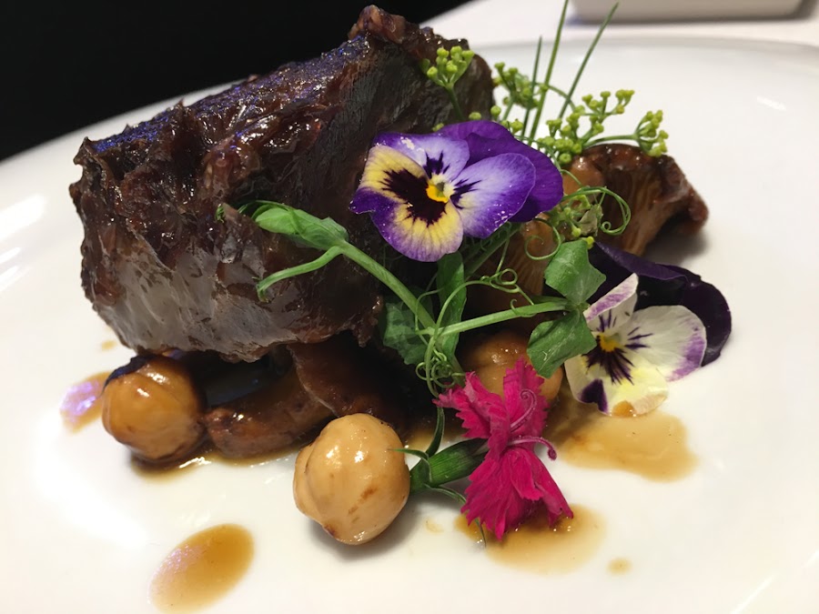 “Carrillada de ternera caramelizada con miel de retama sobre lecho de estofado de rebozuelos”, por Antonio López.