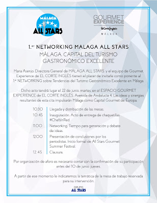 Hoy, día 22 de Junio, ha tenido lugar en el marco de El Club Gourmet Experience de El Corte Inglés de Málaga, el I NETWORKING MALAGA ALL STARS organizado por el GRUPO ALL STARS, dirigido por mi admirada Maria Asenjo (Oak Power).