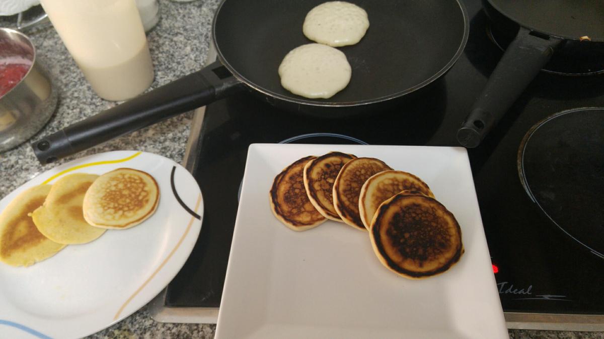 Hacer una compota de fresas con 400g de fresas, el azúcar blanca o morena y el jugo del medio limón o lima. A mi me gusta bastante cocinada la fresa pero a la que le guste menos hecha lo deja menos tiempo en el fuego. Lo importante es que quede como una miel de fresa que será lo que empape nuestros pancakes al comerlos. Yo los dejé cocinando alrededor de 15 minutos.