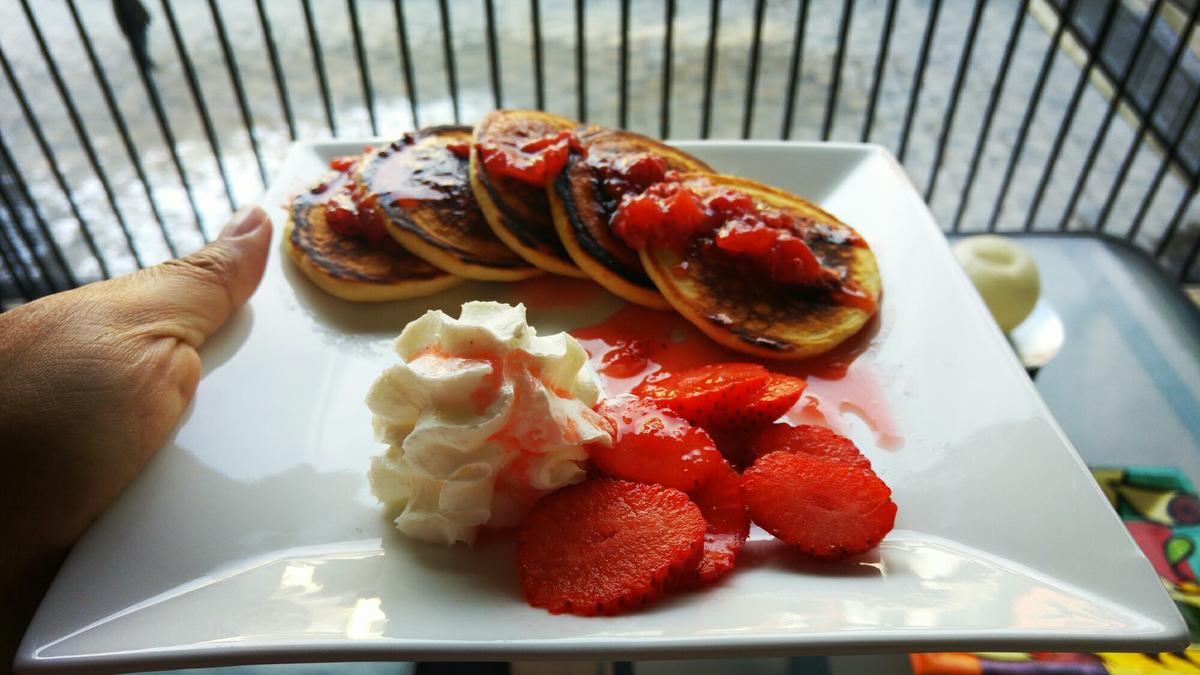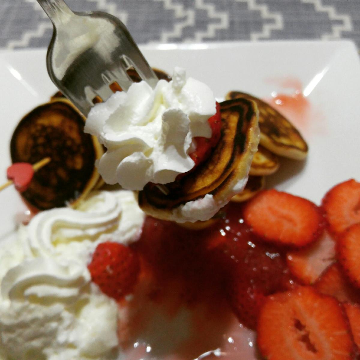 Hola chic@s ! Ya he regresado después de más de dos meses al otro lado del charco. Ya casi llega el 14 de febrero y siempre faltan ideas de qué hacer. Yo como tengo en mi poder tantas cositas de corazón aproveché para hacer estos mini pancakes de fresa con fresas y chantilly.