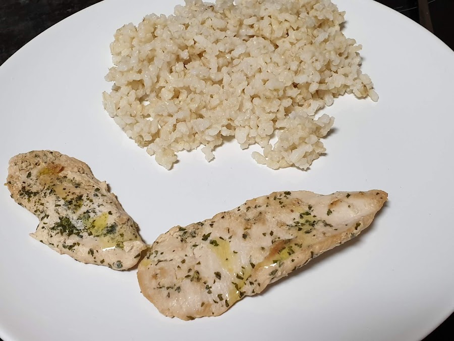 Y por último, arroz con pollo aromatizado.