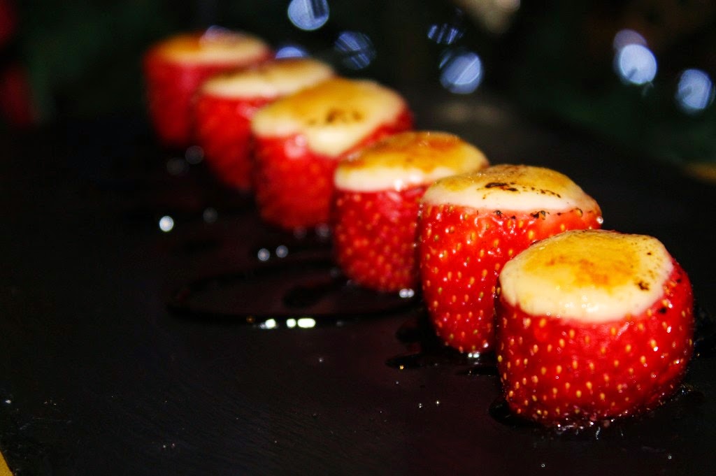 Tengo que deciros que no hay postre más sencillo ni mas estupendo que este, una súper combinación que no tiene ningún secreto pero que resulta ser un diez. Confieso que no es una receta ni mía ni que yo hay inventado, al fin y al cabo en cocina está todo inventado, pero lo tomé en un restaurante en Palma hace unas cuantas noches y me quede casi en estado de shock cuando me puse a la boca cada uno de estos bocaditos de ángeles que hasta que no se prueban no se sabe de que se habla. El restaurante es el Forn de Sant Joan en el casco antiguo de Palma, zona La Lonja y es súper recomendable además de muy acogedor y con un servicio amable e impecable, la señorita que nos atendió era un diez en simpatía, tuvo el gran detalle de enseñarnos el restaurante que tiene comedores privados y parece como estar en casa, además también nos llevó a l cocina y pudimos conocer los artífices de todas las delicias que nos llevamos a la boca, entre ellas estas fresas que yo he querido reproducir un poco a mi manera para poder compartirlas con todos vosotros.