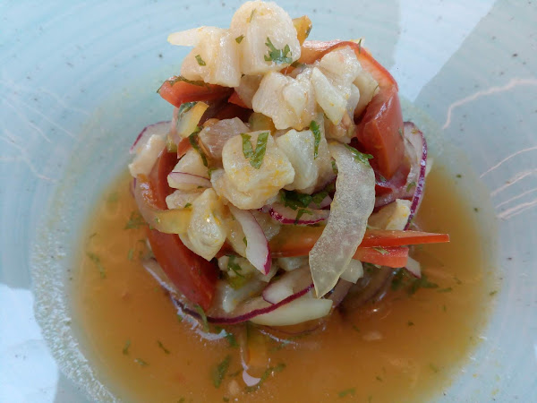 Continuó contando, mientras el Director del Restaurante El Lago, embajador del tomate huevo de toro y gran defensor de los productos KmO nos deleitaba con cada producto, ratificando y añadiendo comentarios como gran conocedor de la gran riqueza de productos y de la gastronomía malagueña, que el tomate huevo de toro es un tomate grande, hermoso, "carnúo" como decían los antiguos del lugar, con todos los matices propios que sólo el cultivo al aire libre, en la época estival, la maduración en la mata, la tierra, las aguas, el clima e incluso la influencia marina, además de la experiencia de los agricultores completan los requisitos para que se produzca ésta maravilla: el tomate huevo de toro.