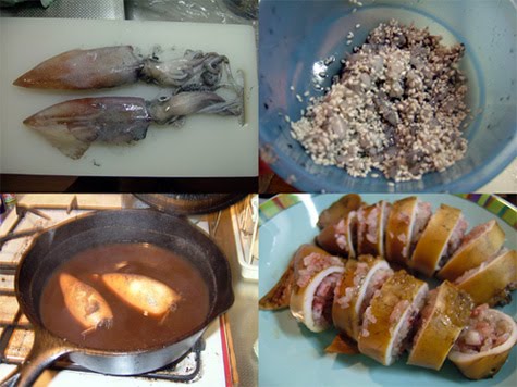 4. Llena cada calamar con arroz y cierra la bolsa con unos palillos.