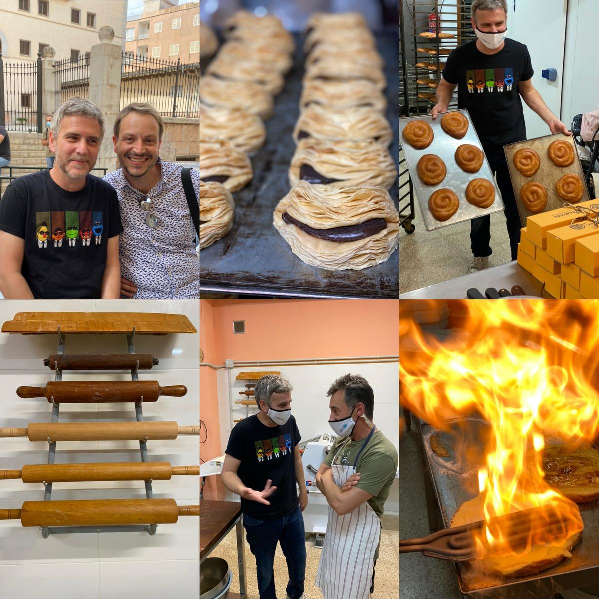 Con el cap descansat i la panxa plena, otra visita que no puedes perderte es el forn de sant Francesc, regentado por Joan Seguí y su esposa María, situado al lado del colegio e iglesia del mismo nombre, y que ofrece muchas especialidades clásicas como son la ensaïmada, el cardenal de Lloseta o sus famosos doblegats, un hojaldre de muchas capas relleno y que no utiliza mantequilla en su elaboración. Joan es el mejor anfitrión, tanto que nos permitió elaborar ensaimadas con él, y vaya maestro, por algo fue el ganador del premio de la primera edición de la mejor ensaimada del mundo, y seguro que muchos lo conocéis porque tiene una cuenta de instagram admirable donde nos cuenta su día a día como obrador de pasteles, tartas y demás dulcerías.
