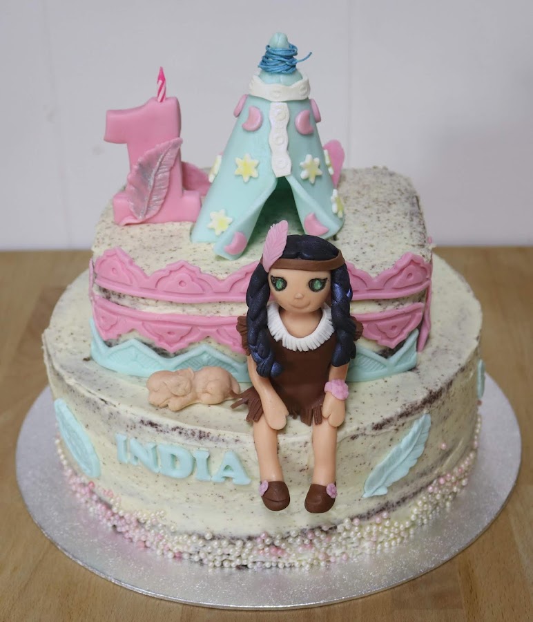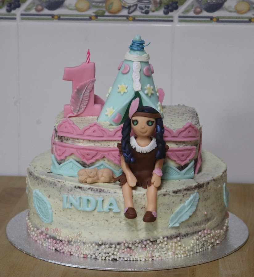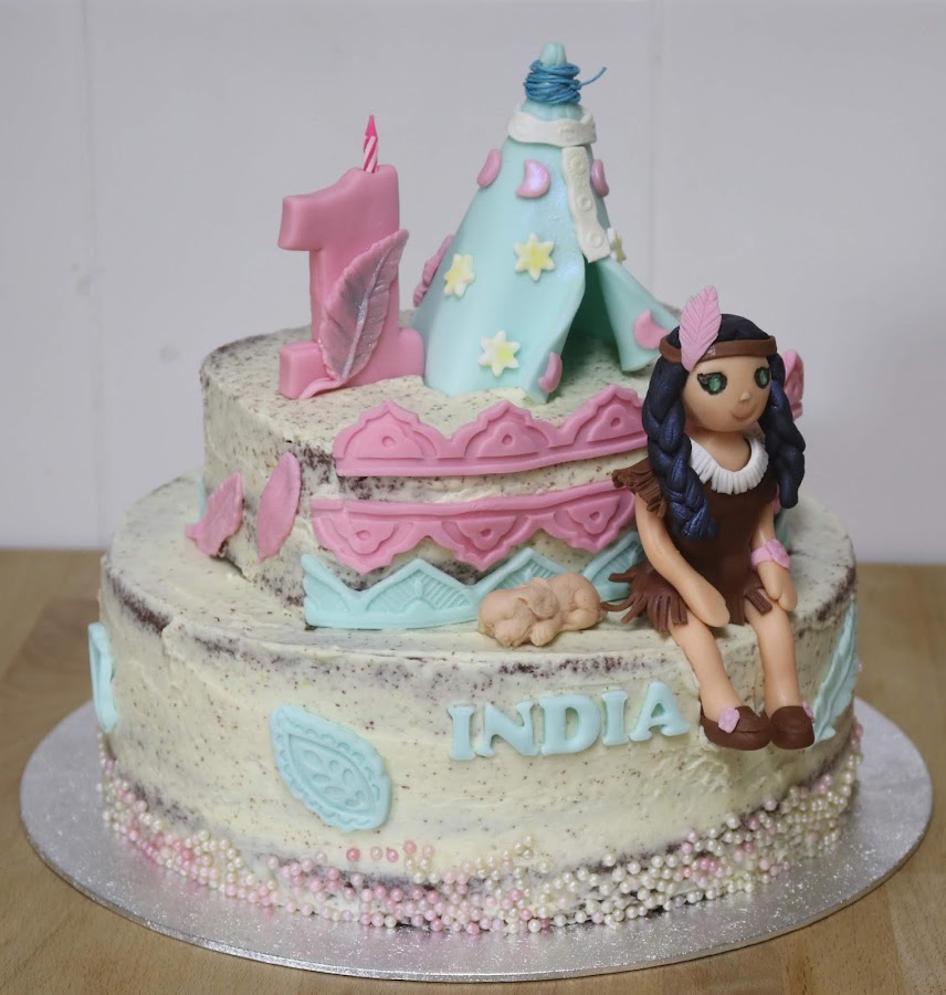 Tarta para una niña que se llama India y acaba de cumplir un añito, a petición de la madrina que se la regalaba, que llevara una india.