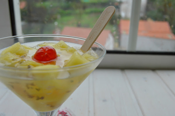1. Ponemos a hervir el agua con el azúcar para hacer un almíbar. Cuando hierva, le añadimos el agar agar disuelto en un poquitín de agua fría. Removemos para que se disuelva bien, lo llevamos al fuego un minuto y reservamos.